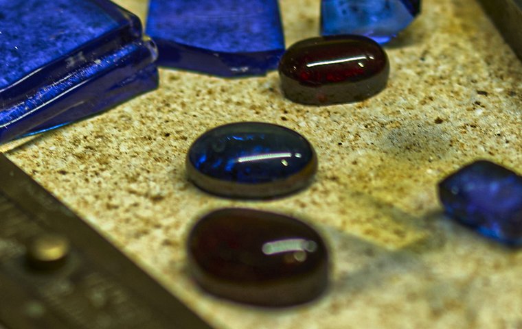 Cuando usamos Cristal de Silicia, lo cortamos a mano y con soplete hacemos la técnica de tack fusión para unir 2 cristales y crear un espesor que nos sirva para después móntalo en metal. Este cristal también lo tallamos (lapidaria) para darle forma y brillo.