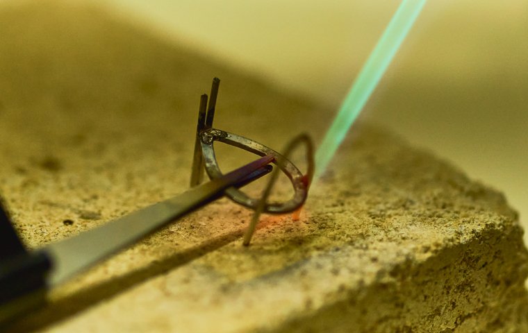 Este trabajo lo realizamos con diferentes tipos de metal como bronce, plata u oro, fundiéndolo, laminándolo y trefilándolo (alambre) para después cortarlo o calarlo, soldarlo, lijarlo y pulirlo, para finalmente montar el cristal o cuarzo y terminar una pieza de joyería única.